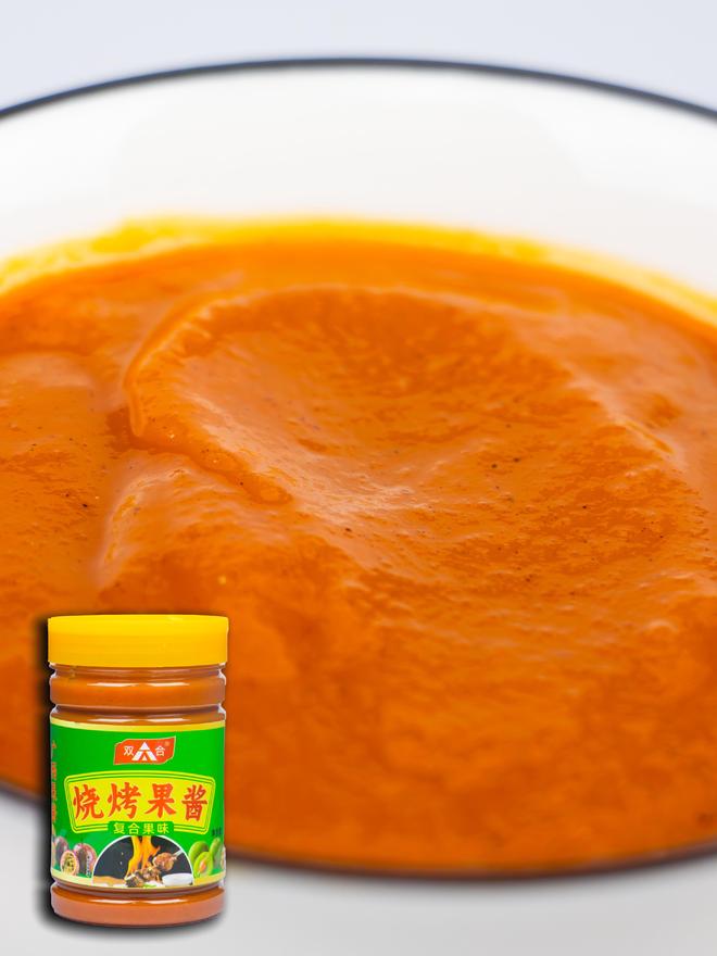 烧烤果酱是广西的特色烧烤用酱,它是以广西丰富的水果资源为基础,将多种水果融合制作而成的酱料。与一般果酱不同,烧烤果酱甜味较少,水果香气清新且丰富,并为烧烤做了相应改良,烤出的烤串不仅保留了本身的鲜香和炭火味,更是与果香相互融合,吃起来相较传统烤串少了些油腻,多了清新果香。