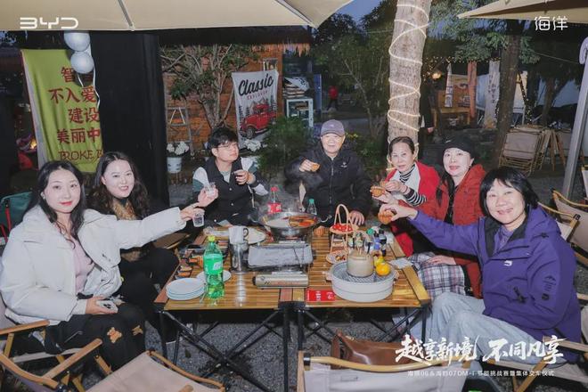 火锅烧烤晚宴的“烟火气浪漫” 更是点睛之笔:营地特意搭建的火锅烧烤区,食材新鲜多样,火锅的热辣与烧烤的焦香在空气中交织。车主们围坐在一起,一边分享着新车体验,“我家海狮06的后备厢刚好能放下烧烤架!”“海豹07 DM-i的车载冰箱冰个饮料太方便了!”一边在烟火气里,把“比亚迪家庭”的归属感拉满。