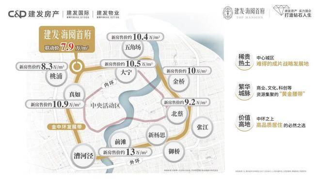 上海金色中环,聚集重磅黄金资源,见证上海每一次城市格局迭代,崛起众多城市CBD。一条中环线,构筑着上海精英的置业版图。普陀中环,正高速发展立势金色中环。建发海阅首府售楼处电话:
